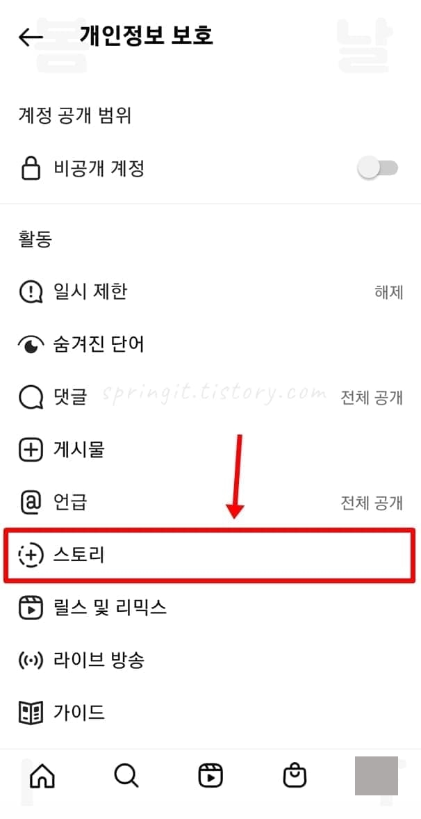 3. 스토리에 공유 허용을 켜주시면 됩니다.