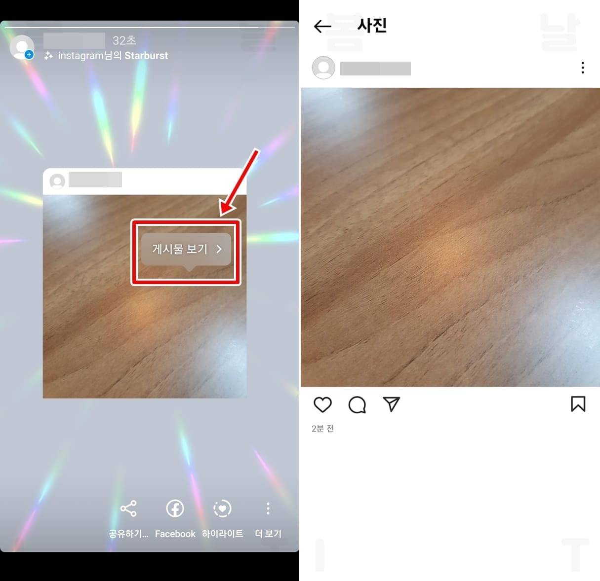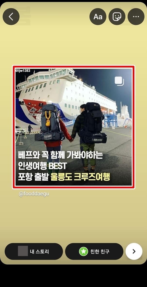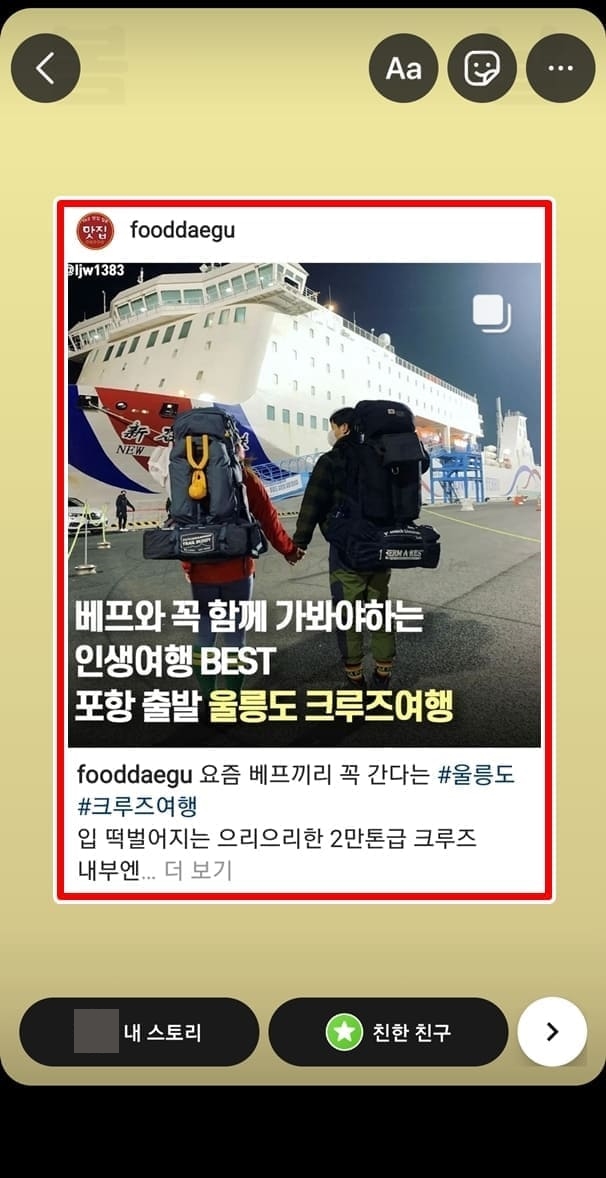 3. 스토리에 타인 게시물이 추가되었습니다.