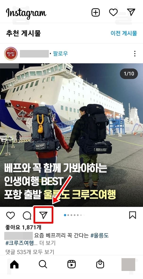 1. 타인 게시물에서 공유 버튼을 클릭합니다.