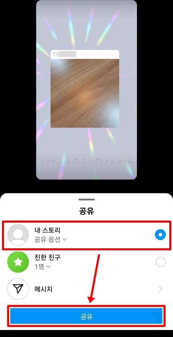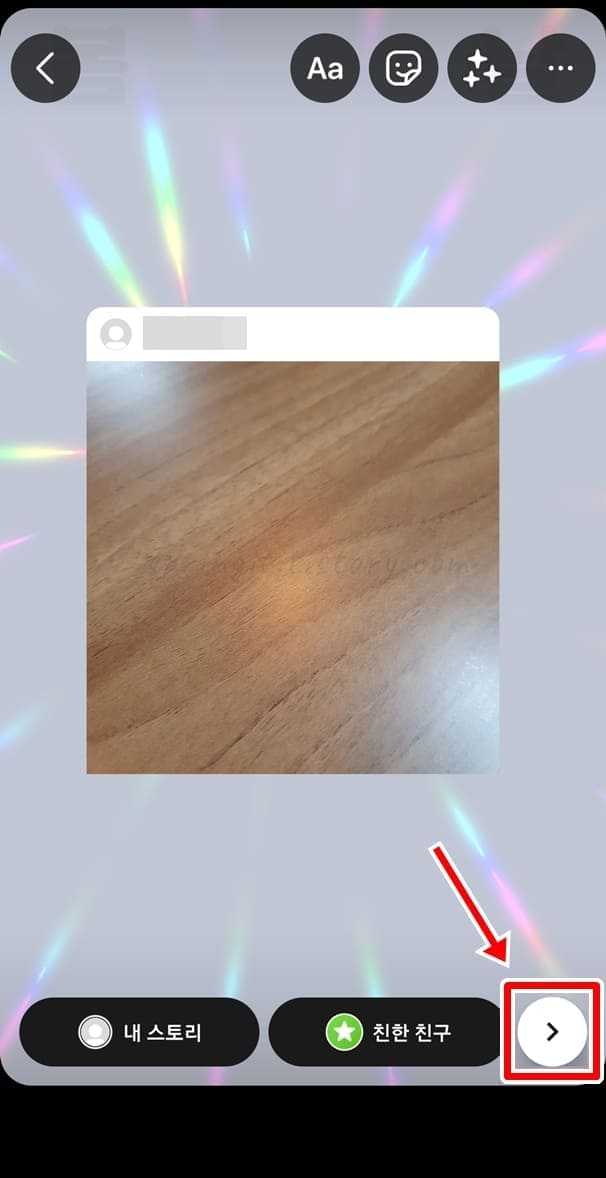 5. >버튼을 눌러서 내 스토리에 공유하시면 됩니다.