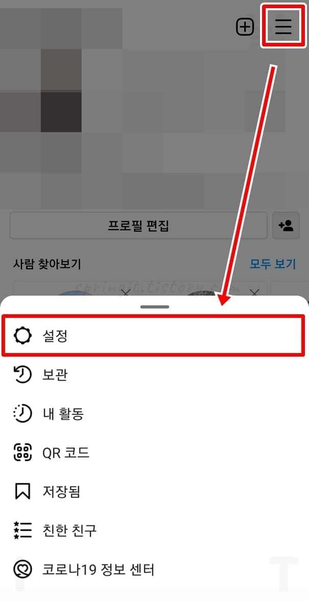 1. 인스타그램 내 프로필에서 더보기 버튼을 클릭합니다.