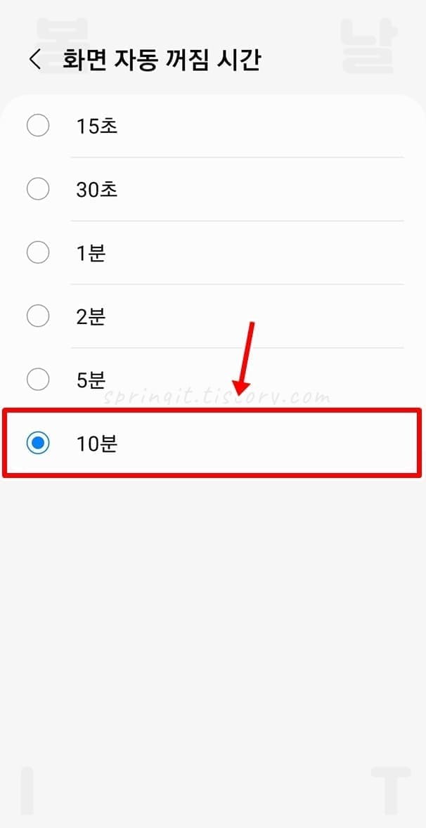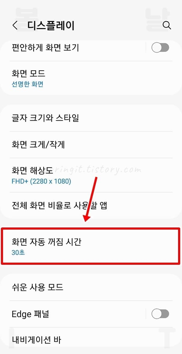 3. 화면 자동 꺼짐 시간을 누릅니다.