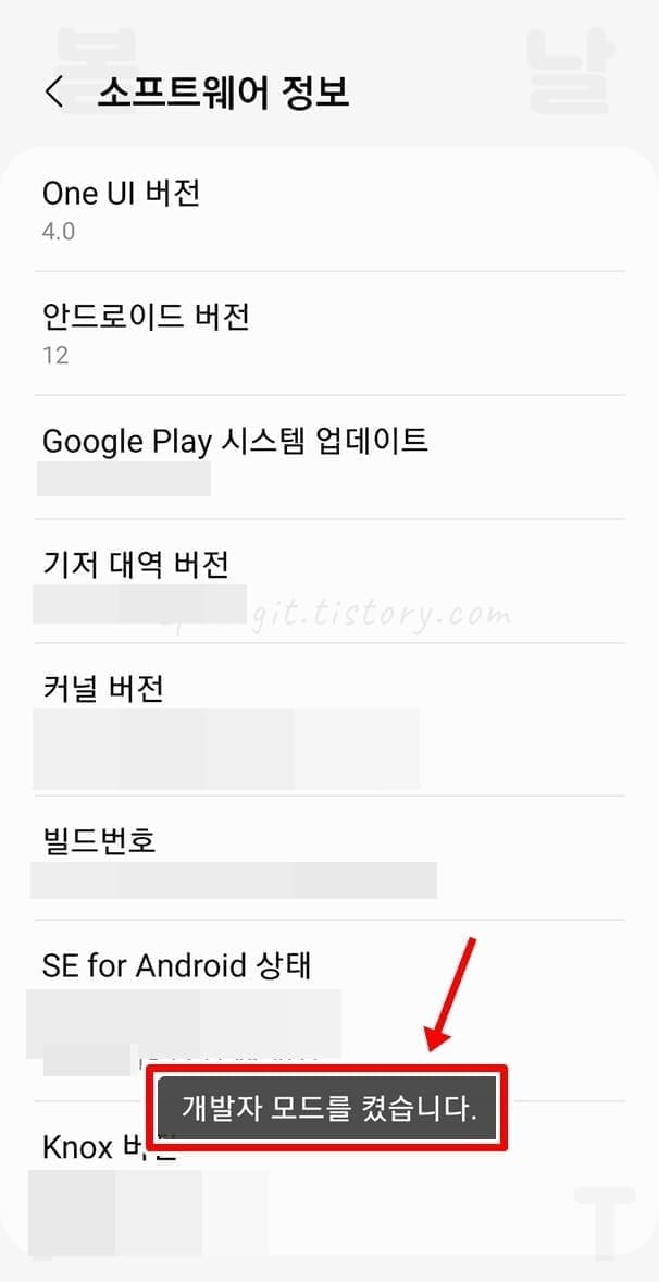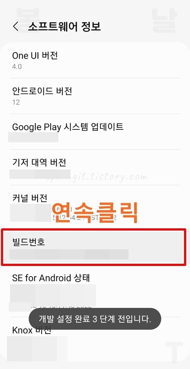 3. 빌드번호를 8번 연속해서 클릭합니다.