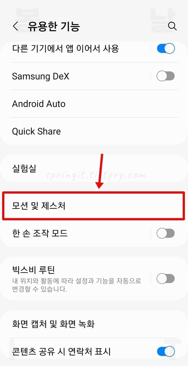 2. 모션 및 제스처를 누릅니다.