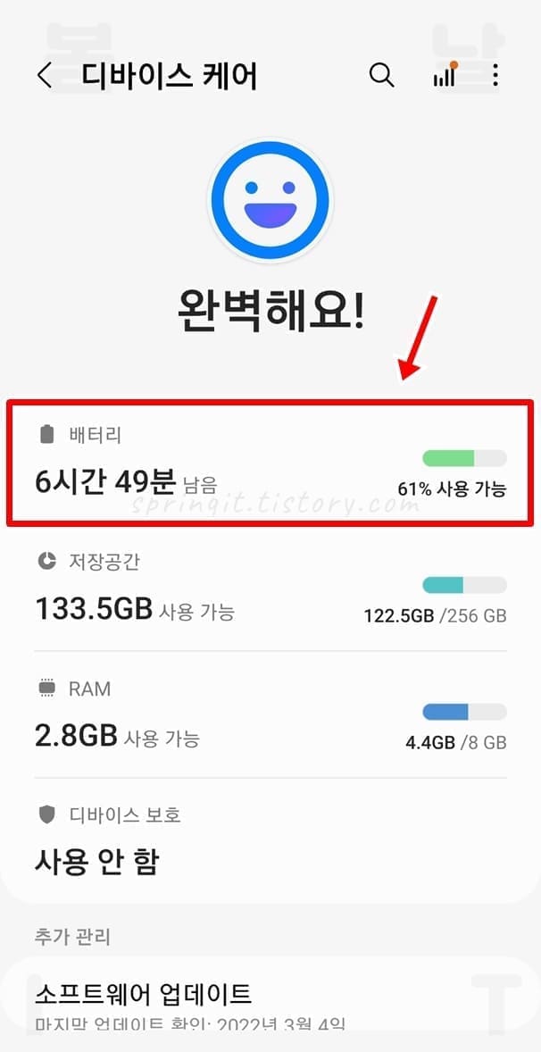 1. 설정 앱에서 배터리 및 디바이스 케어를 클릭합니다.