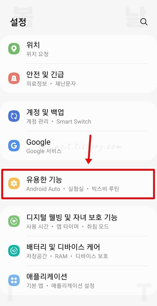 1. 갤럭시 설정에서 유용한 기능을 클릭합니다.