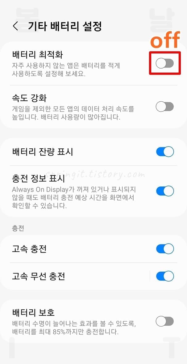 5. 배터리 최적화 기능을 비활성화합니다.