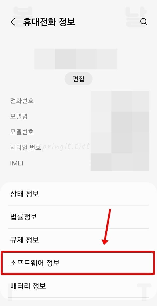 2. 소프트웨어 정보를 누릅니다.