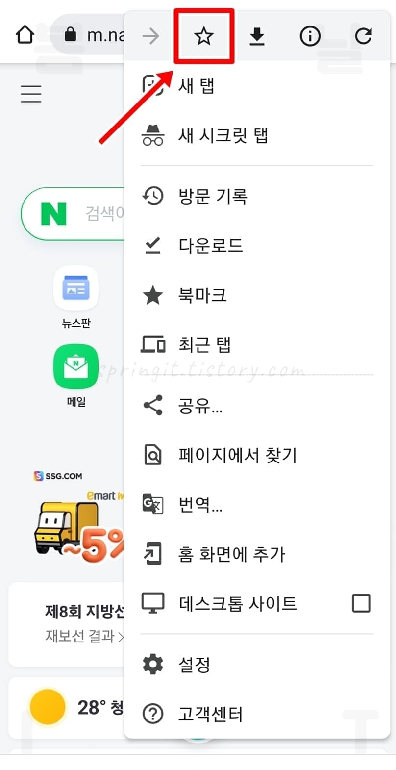 모바일 크롬 북마크 추가된 사이트 확인하기