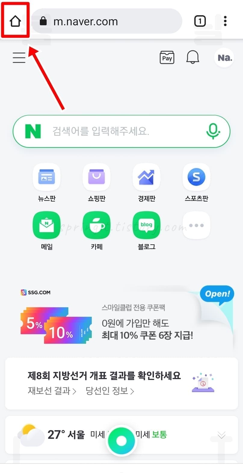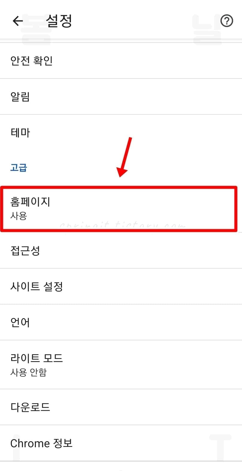 6. 크롬 앱에서 홈페이지 버튼을 클릭해봅니다.
