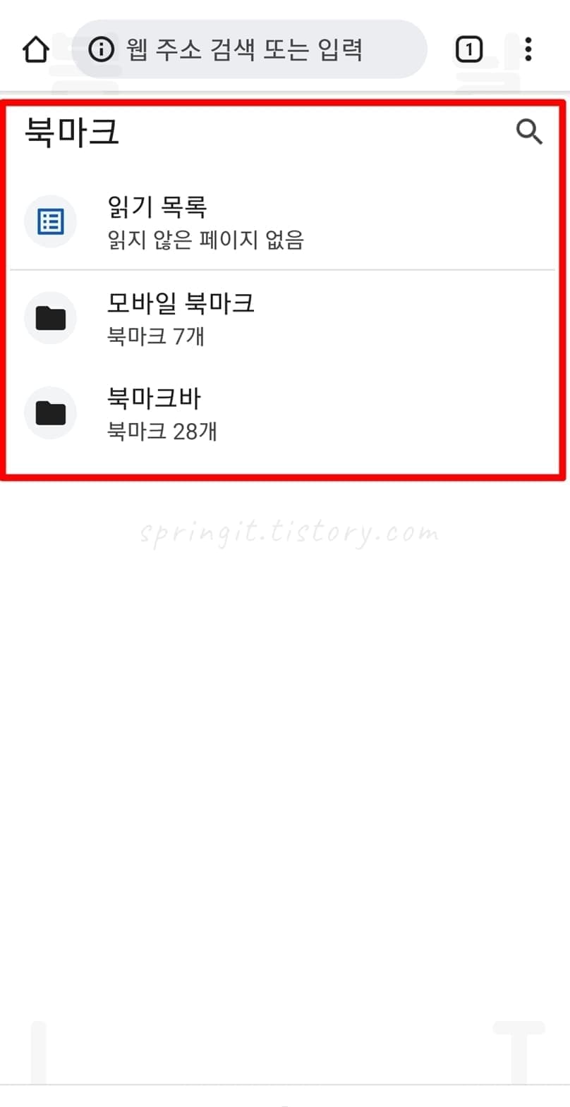7. 모바일 크롬 북마크 화면으로 곧바로 이동됩니다.