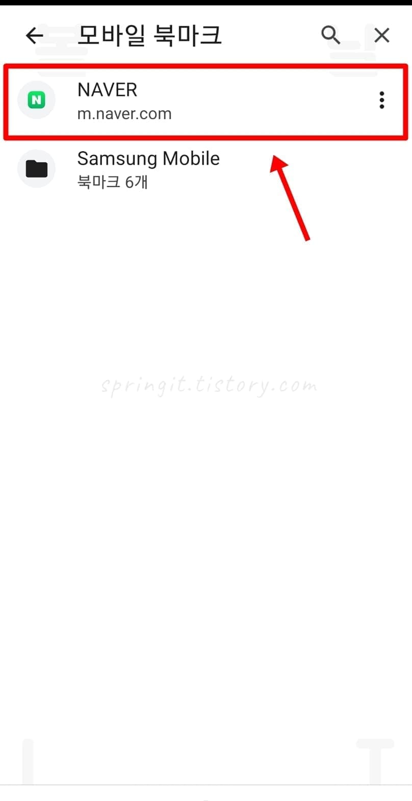 4. 모바일 북마크로 등록된 사이트를 확인합니다.