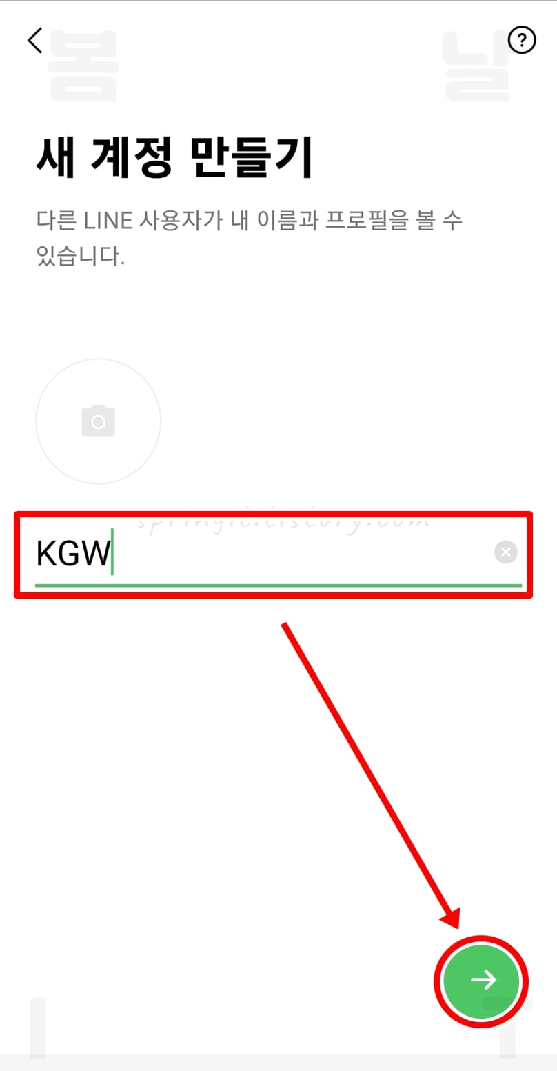 9. 내가 사용할 라인 이름을 입력하고 → 버튼을 누릅니다.