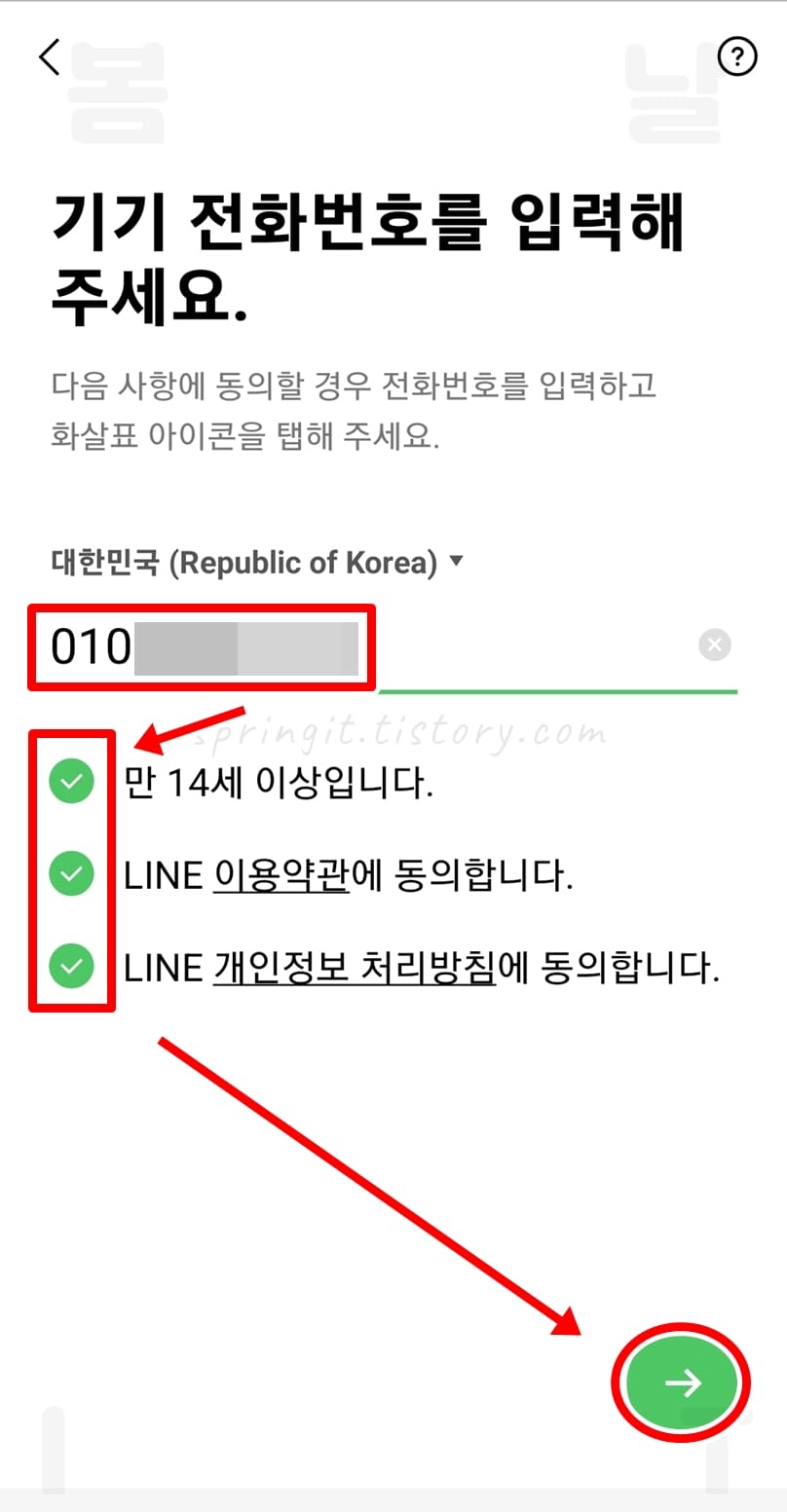 5. 나의 휴대폰 전화번호를 입력합니다.