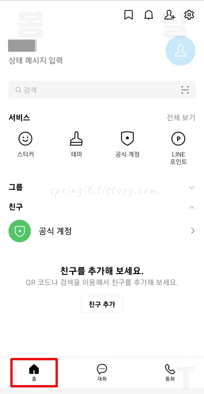 라인 홈 / 대화 / 통화 메뉴 기능 간단하게 알아보기