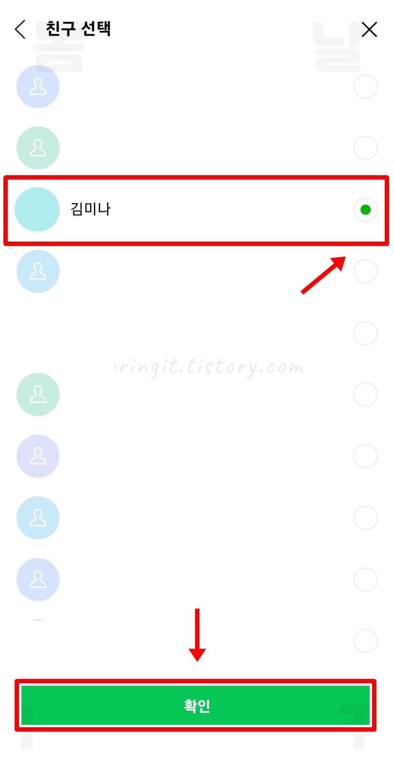 5. 나를 차단했는지 확인하고 싶은 상대방을 선택합니다.