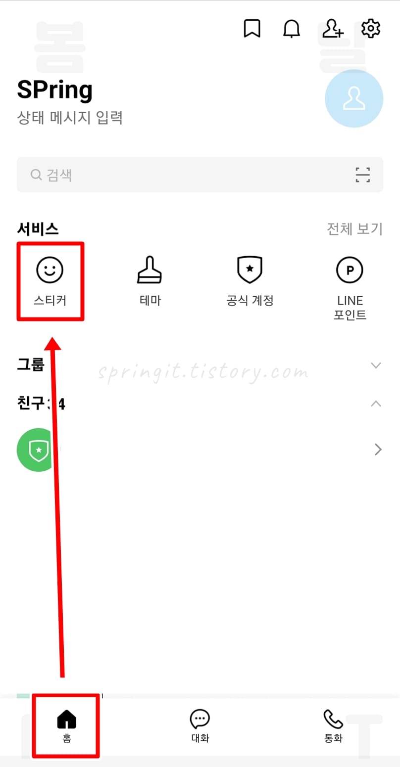 1. 라인 앱 홈에서 테마를 클릭합니다.